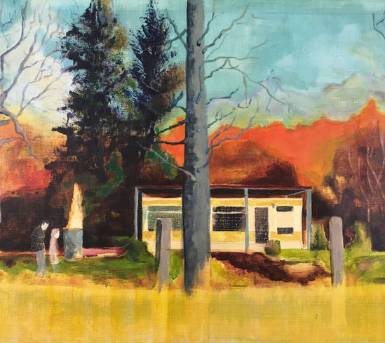Ingrid Verhelst haar landschapschilderijen zijn gebaseerd op foto’s maar niet fotorealistisch geschilderd. Doormiddel van kleur creëert ze een magische sfeer in haar schilderijen. Vaak zijn er verwijzingen in terug te vinden naar stedelijke en menselijke aspecten zonder dat deze specifiek aanwezig zijn. Er is sprake van menselijke aanwezigheid of sporen daarvan als in een verlaten huis of boot.