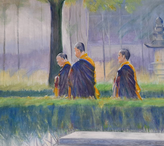 Bij het schilderen gebruik ik meestal sterk verdunde verf maar wel heel gelaagd om zo een bepaalde sfeer en gevoeligheid te bereiken. Inspiratie haal ik vooral uit foto’s, wandelingen in mijn buurt en kunstwerken van de grote meesters. Uitleg bij mijn werken geef ik liever niet omdat het juist interessant is dat elke toeschouwer er zijn eigen verhaal bij kan verzinnen.